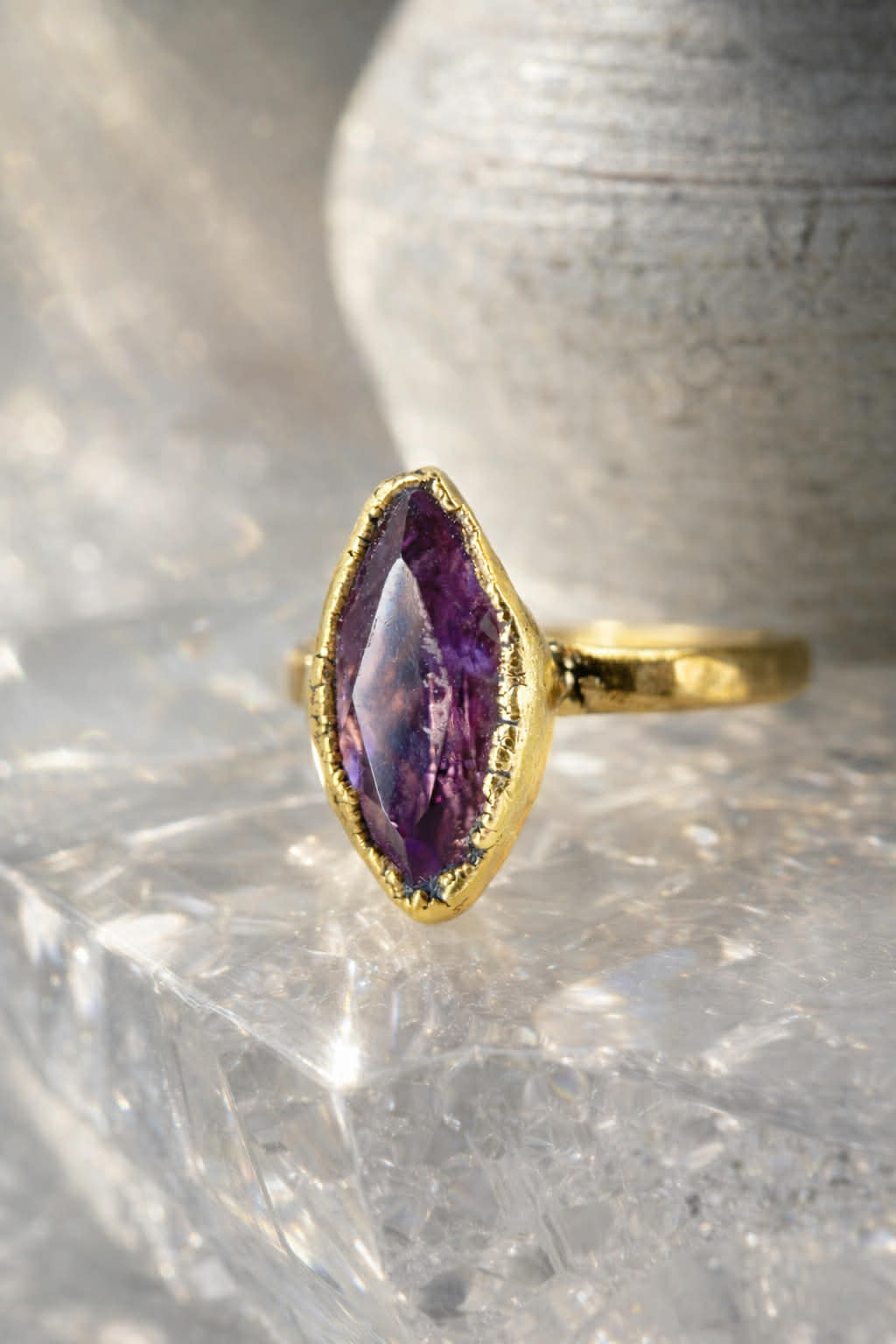 Long revered as a stone of higher consciousness, clarity, and inner truth, amethyst has adorned seekers and sages for millennia. Set with our signature oceanic silhouette, this piece feels like a relic lost in a past life, waiting patiently for you to find it once more.