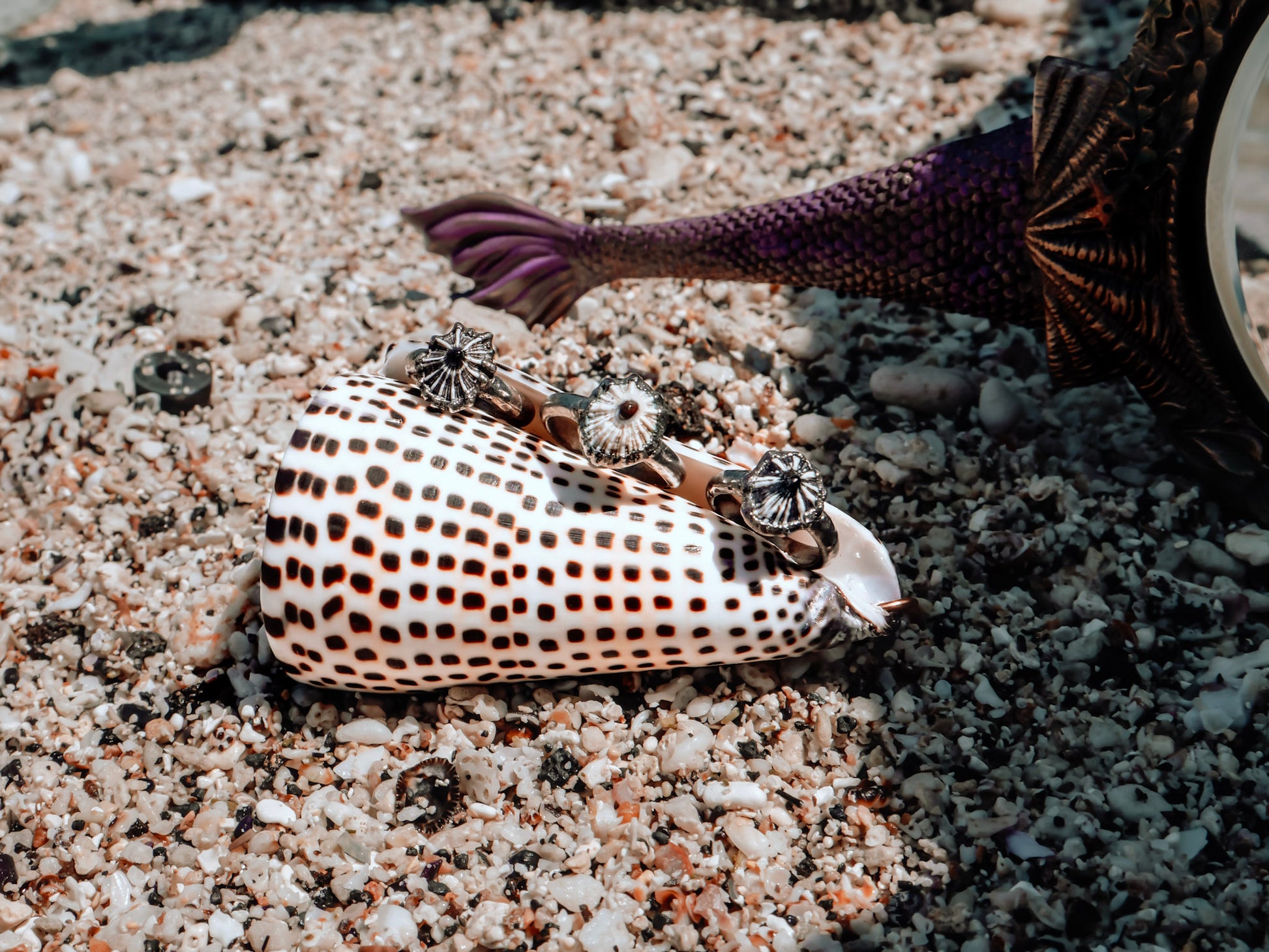 - Materials: seashell, palladium, 24k gold.